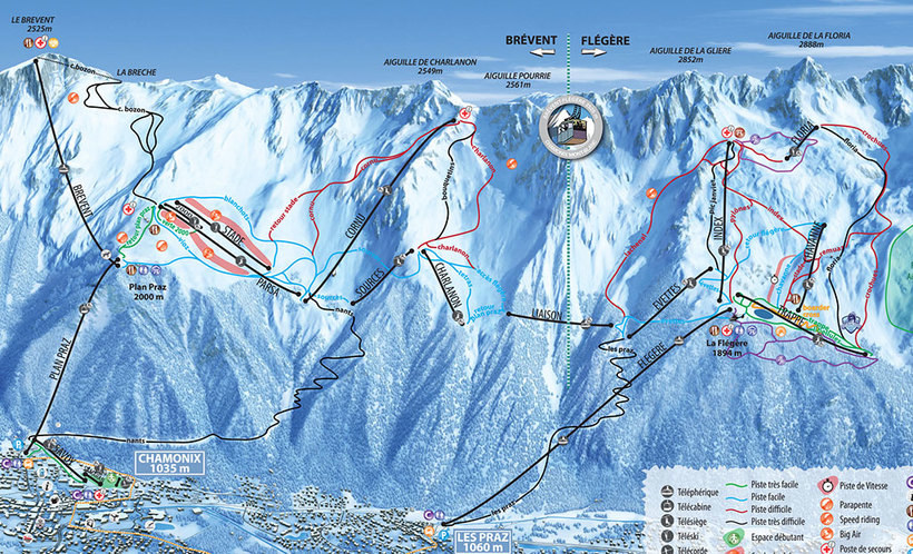 Более сложные трассы вы найдете в зонах Бреван и Флежер. Они соединены между собой кабинным подъемником. Сюда можно попасть на фуникулере из Шамони или Аржентьера.