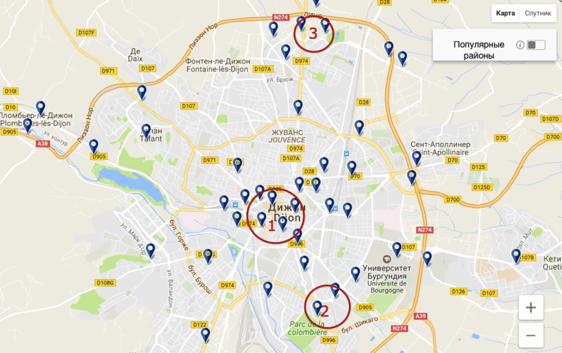 Цены в Дижоне на апартаменты/отели очень приемлемые: например, здесь вы можете снять приличные апартаменты в самом центра города за 60 EUR за ночь, а в Париже аналогичная жилплощадь обойдется в 160 EUR за ночь.