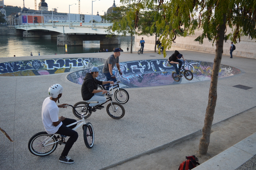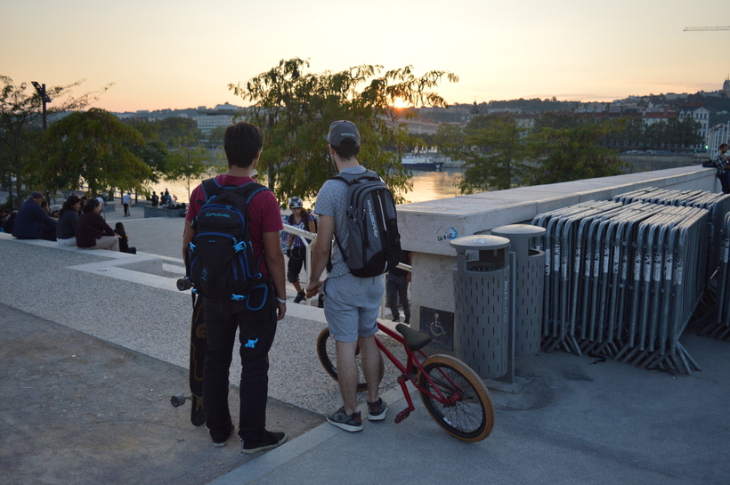 Прогуливаясь по набережной Роны, я часто вижу парней проезжающих на скейте или роликах.