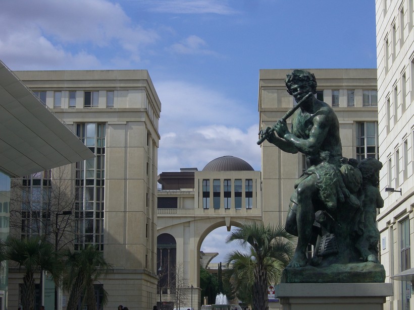- Квартал Антигон или Antigone. По этой части города прогуляться нужно обязательно, так как это особый Монпелье внутри Монпелье. Своеобразный квартал, вызывающий такие же противоречивые отклики, как пирамида у Лувра в Париже. В качестве названия недаром фигурирует имя героини одного из древнегреческих мифов — испанского архитектора, ответственного за Антигон в Монпелье, вдохновляла именно древнегреческая тема. Это прослеживается в архитектурном стиле всех зданий, обилии греческих скульптур на улицах и площади, которая называется не иначе, как площадь Диониса, фонтанах и так далее. Так что есть шанс погулять по Древней Греции, не выезжая из Франции.
