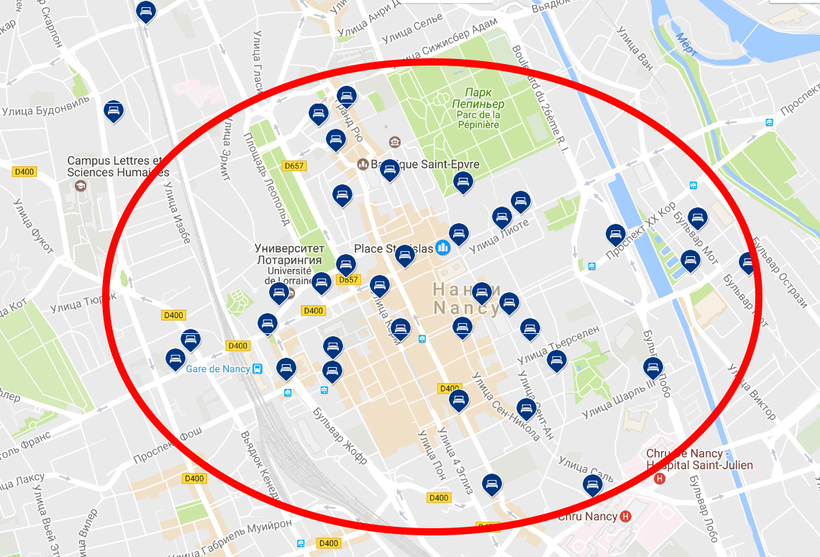 Я советую добираться до Нанси автомобилем, если вы уже находитесь в Европе. Из Москвы путь может показаться долги и утомительным (о путешествии между русской и французской столицами читайте здесь), куда практичнее будет перелёт и последующая аренда авто, например, в Париже. Варианты и цены на прокатные машины можно посмотреть по ссылке.