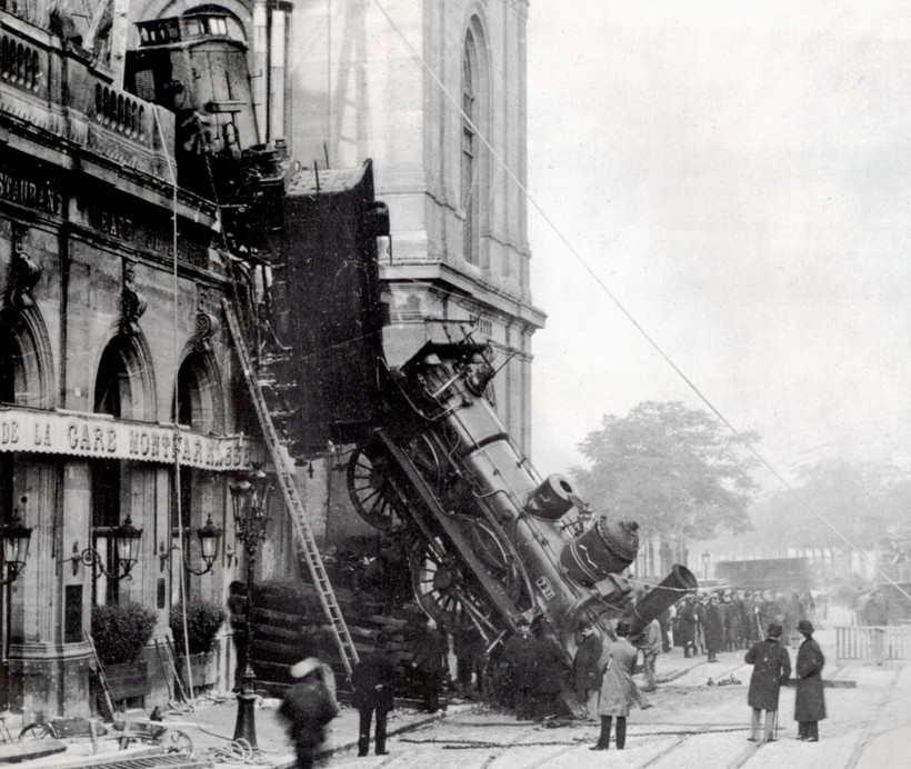 Однажды, в один из октябрьских дней 1895 года, на вокзал пребывал экспресс из Гранвиля. На платформе толпились встречающие, пассажиры приготовили свои чемоданы, кто-то уже подошел к выходу из вагонов, как вдруг...из-за неисправности тормозов поезд пролетел станцию, сбил тупиковый упор и пробил стену вокзала. Паровоз вывалился на улицу и только тогда подвижной состав смог остановиться, уткнувшись носовой частью в мостовую.