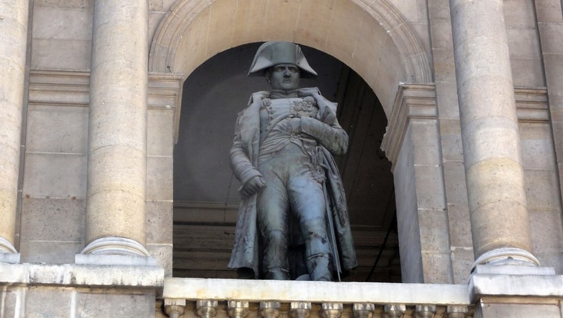 Интересная история сопровождает статую Наполеона, которую вы можете увидеть во главе здания из Двора Почетного Легиона. Изначально она находилась на Вандомской колонне на одноименной площади, до тех пор, пока в 1863 году не была заменена новой статуей Наполеона в стиле Цезаря, которая и по сей день украшает Вандомскую колонну. А оригинальная статуя во время социальных треволнений была в процессе транспортировки сброшена в Сену, откуда её выловили лишь 6 лет спустя! И только через 35 лет было решено установить её в центральном нефе здания Парадного Двора Почетного Легиона Дома Инвалидов.