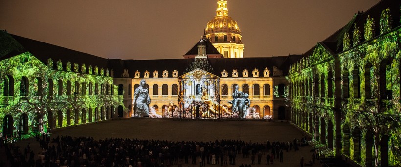 Сегодня в парадном дворе, кроме официальных церемоний и посвящений военной тематики, также проводят летом "Ночь в Доме Инвалидов" (Nuit aux Invalides). Это лазерное 3D шоу, которое проецируется на стены здания и всегда имеет место в Парадном дворе. Через проекцию вам рассказывают историю Дома Инвалидов, показывают, как он выглядел в различные эпохи и какие важные исторические события проходили здесь. Это небольшая проекция стоит посещения. Сделано действительно зрелищно. Рассказывает пусть и кратко, но вполне ёмко историю памятника.