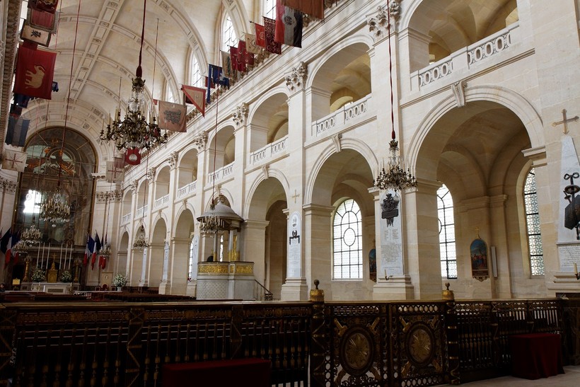 Эти два церковных места служения были разделены стеной позже, чтобы и королевские особы, и солдаты могли одновременно посещать службы, не пересекаясь при этом, ведь это было недопустимо. Наибольший интерес сегодня представляет собой солдатская церковь, советую вам заглянуть сюда. В декоре церкви есть трофейные знамена, которые стали добычей в различных сражениях на протяжении веков. Это единственная церковь в мире, где военные знамена использованы в качестве декора.