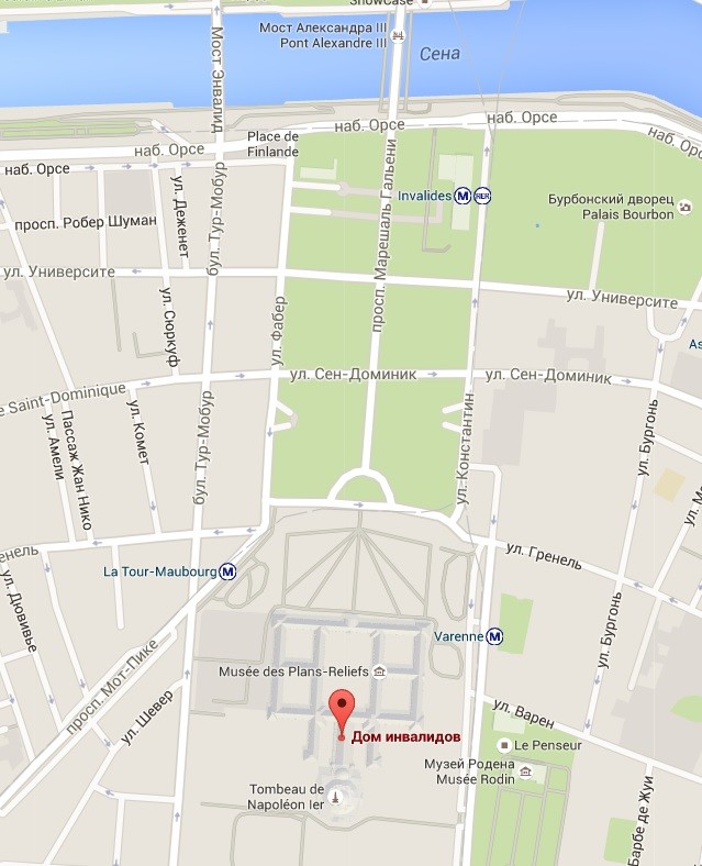 Однако если вы не являетесь просто праздно шатающимся обитателем города или тем редким туристом, у которого достаточно времени, чтобы осмотреть все достопримечательности без спешки и который не следует особо программе, а у вас запланировано посещение Дома Инвалидов, лучше всего до него добраться по линии метро 8 или 13 и выйти на станции Invalides. Выйдя здесь из метро, вы окажетесь на большой площади перед зданием, которая иначе называется эспланада Инвалидов, а за спиной у вас расположится Сена и мост Александра III.