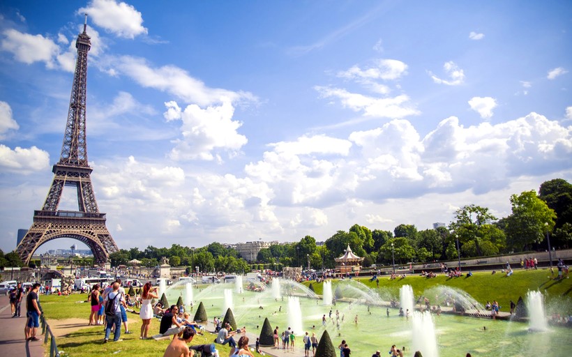 Летом в жару советую прилечь на изумрудный газон у фонтана и освежиться прохладной водяной пылью перед броском к Эйфелевой башне через мост Йены.