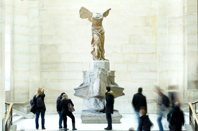 Во-вторых, вы не пройдете мимо Нике (иногда говорят Ника) Самофракийской. Эта богиня победы, причем морской, потому что стоит на пьедестале в виде носа мраморного корабля, прекрасна даже без головы. Куда делась голова обнаруженной в 1863 году на острове Самотраки (Самофраки) на северо-востоке Эгейского моря скульптуры II века до нашей эры – история на этот раз умалчивает. В честь чьей именно победы и в каком морском сражении был создан шедевр, историки спорят до сих пор. Не станем им мешать, пойдем дальше коридорами Лувра...