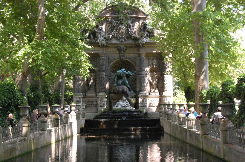 Еще пара шагов, и мы с вами выходим к одному из прекраснейших фонтанов мира – фонтану Медичи, построенному в стиле барокко все тем же архитектором Саломоном де Броссом для все той же Марии Медичи.