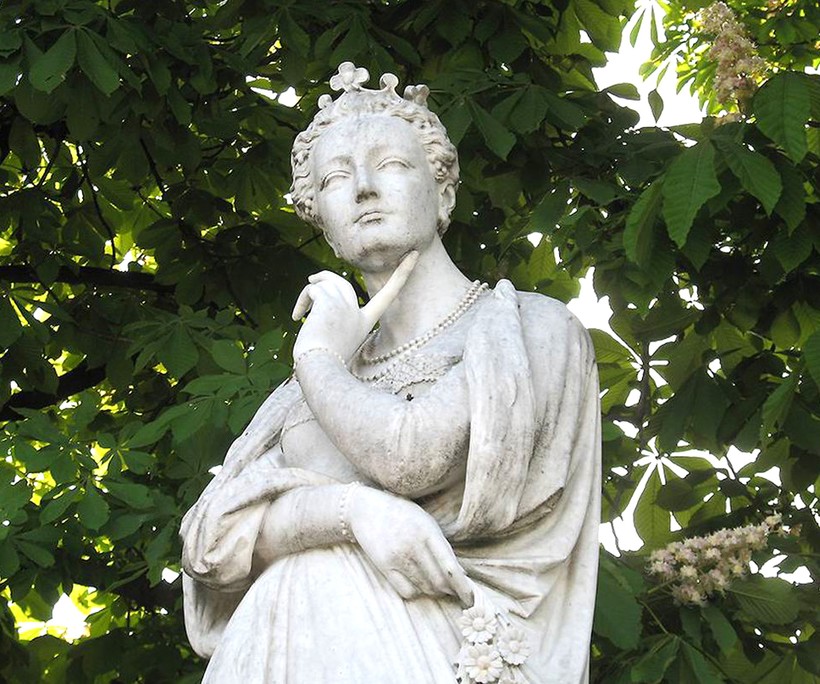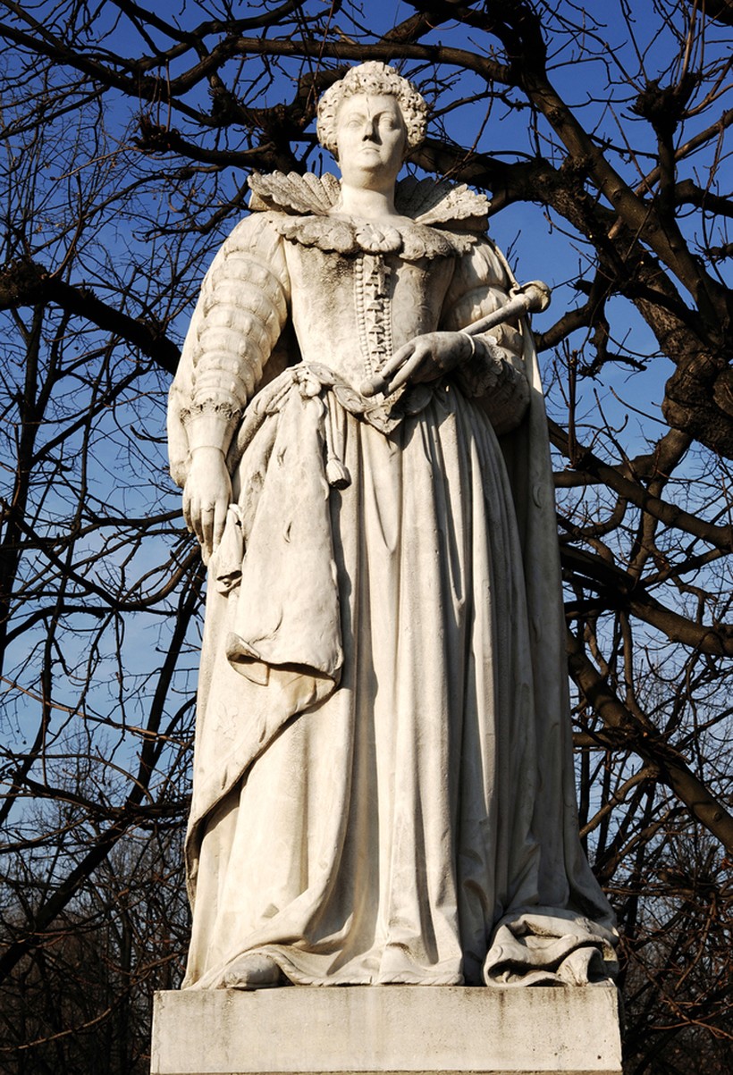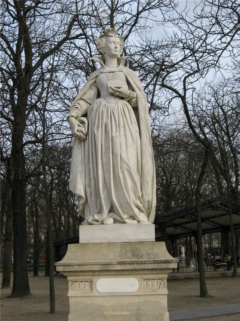 Рядом под каштанами прячутся скульптуры Клотильды Бургундской, Матильды Фландрской, Маргариты Анжуйской… Нет здесь, правда, нашей Анны Ярославны (известной во Франции как Агнесса Русская), жены короля Генриха I.Зато есть, конечно, Мария Стюарт. Она, представьте, тоже была королевой Франции, женой короля Франциска II, хотя и недолго – в 1559-1560 годах. А когда болезненный супруг ее скончался, вернулась в Шотландию. Что было дальше, вы знаете из пьесы Шиллера.