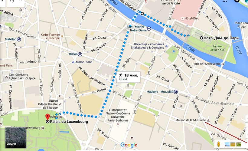 Левый берег Сены, через дорогу – Латинский квартал, здания университетов и лицеев Сорбонны. Здесь студенты дописывают домашние задания, здесь народ постарше отдыхает на железных стульях в свой обеденный перерыв, здесь в зеленых аллеях мамы, бабушки и нянюшки выгуливают юных граждан Французской Республики.