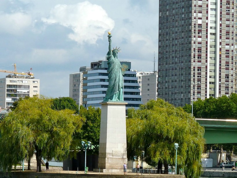 - Лебединый остров – небольшой искусственный остров на Сене, где стоит уменьшенная копия Статуи Свободы, преподнесенная Парижу американской диаспорой в качестве благодарности французам за их подарок – большую Статую Свободы. В левой руке эта «малышка» держит табличку с датами, обозначающими День независимости США и День взятия Бастилии. Остров находится совсем рядом с Эйфелевой башней.