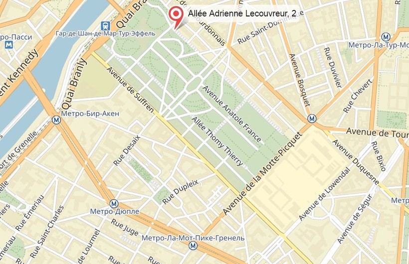 2 allée Adrienne-Lecouvreur (читается как «Але Адриен-Лекуврёр», аллея Адрианы Лекуврёр, )