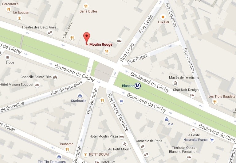 Добраться до Мулен Руж не составит труда. Кабаре находится в центре города совсем рядом с метро. Советую добираться сюда подземкой, так, когда вы выйдете из метро, окажетесь прямиком перед Красной мельницей.
