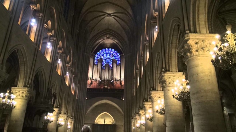 Когда я все-таки оказалась внутри, то поразилась красоте витражей и окна-розы. Мне повезло еще, что мы попали как раз на время мессы. Звучание органа под сводами этого древнего собора необычайно красиво. Подробно о нем рассказано в этой статье.