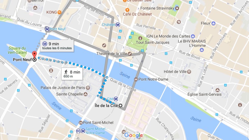 Со стороны Нового моста находится еще одна близкая к Ситэ станция метро с одноименным названием. Это линия 7. До нее удобнее ехать, если вы хотите пройтись по Новому мосту к Ситэ.