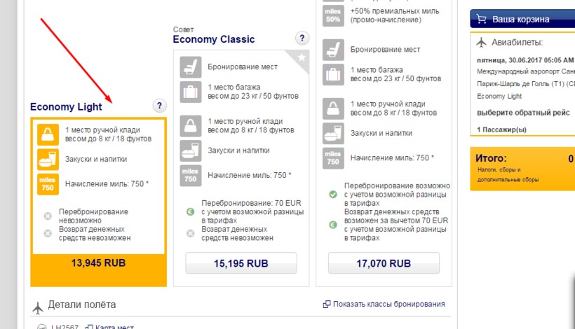 У компании Lufthansa появился новый тариф Лайт. По нему билеты продаются за 200 евро туда-обратно на перелеты до Парижа из Москвы или Санкт-Петербурга. У него есть такая же особенность, как у Ryanair — бесплатно брать с собой можно только ручную кладь весом до 8 кг. За багаж придется доплачивать.