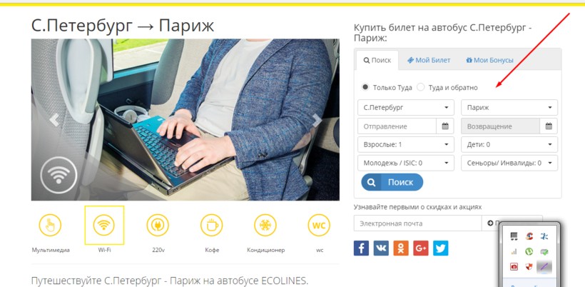 Автобусы оснащены туалетом, электрическими розетками, Интернетом, кондиционером, телевизором, мультимедийным оборудованием. Расстояние между креслами увеличено для удобства пассажиров.