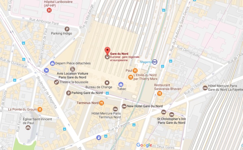 Прямо напротив вокзала находится станция метро с одноименным названием. Она находится на пересечении линий 4 и 5. По 4-ой ветке вы доедете до острова Ситэ и башни Монпарнасс. По 5-ой — до площади Бастилии. Рядом есть остановка и RER E (Magenta). RER — это пригородные электрички, на которых можно доехать до пригородов Парижа. Билет на метро стоит 1,90 EUR. На RER цена билета зависит от расстояния до точки прибытия — от 3 EUR.