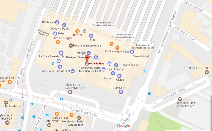 В здании Восточного вокзала есть станция метро с одноименным названием. Она расположена на пересечении линий 4-ой, 5-ой и 7-ой. По 4-ой доедете до острова Ситэ или башни Монпарнасс, а по 5-ой —- до площади Бастилии. Выбрав 7-ую линию, вы доберетесь до галереи Лафайетт, Опера Гарнье, Лувра.