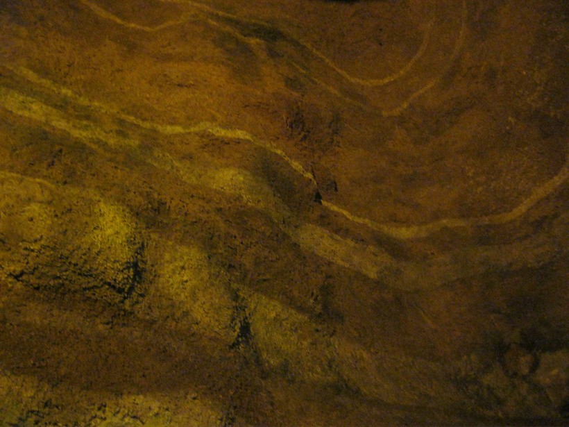Таким образом появилась эта зала, которая демонстрирует разные геологические слои. Они специально окрашены в разные цвета.