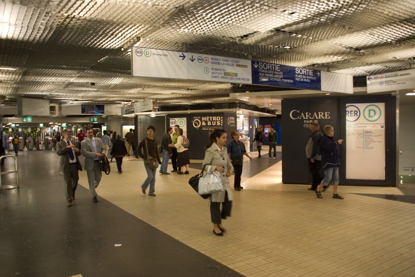 Первое мое впечатление от метро Парижа было не самое приятное. Я была поражена грязью, которая там царила, и ужасными запахами. Это касалось, в особенности, станций Chatelet и Les Halles. Это две большие станции, соединенные между собой переходом, которые находятся на пересечении сразу нескольких линий метро и RER. Ориентироваться там очень сложно — множество переходов и лестниц.
