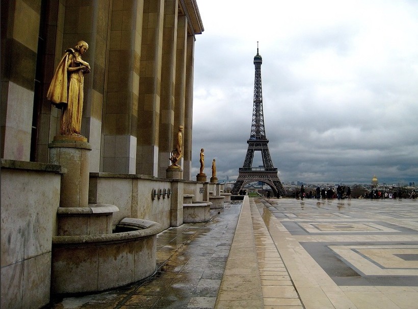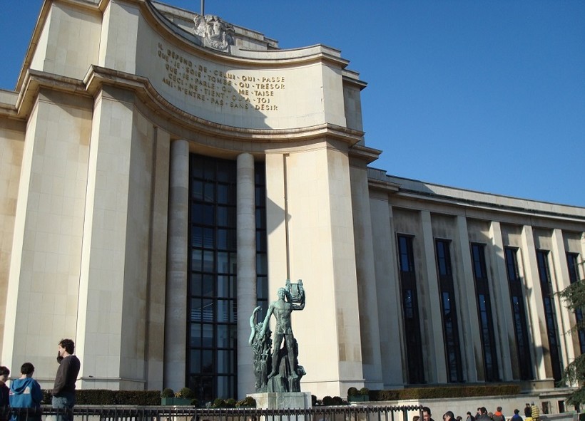 На площади Трокадеро перед вами расступаются два здания, между которыми и открывается прелестный вид на Эйфелеву башню. И, как это часто бывает, от её вида кружится голова, и мы совсем забываем об окружающем нас мире. Однако давайте обратим внимание на Дворец Шайо, которым также славится площадь.