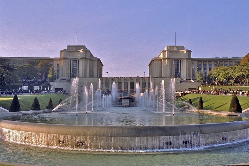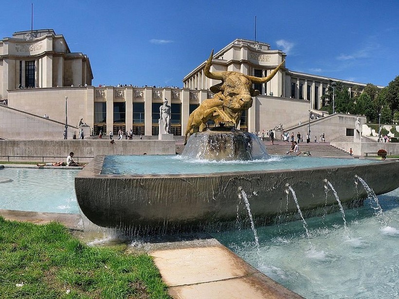 Фонтан Трокадеро был возведен в 1937 архитекторами Роже-Генри Эксперт, Поль Мэтр и Адольф Тиер. Он был построен на месте старого, построенного Габриэлем Давю, автором первого варианта Дворца Шайо.