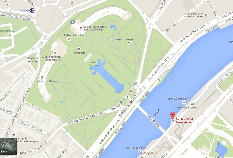 - На метро: линия 9 и 6, станция Трокадеро (Trocadéro). Стоимость проезда: 1,80 евро за одноразовый билет; 14,10 евро — так называемый «карнет» (carnet), состоящий из 10 билетов. Детский «карнет» (от 4 до 10 лет) — 7,05 евро. Детям до 4 лет — проезд бесплатный.