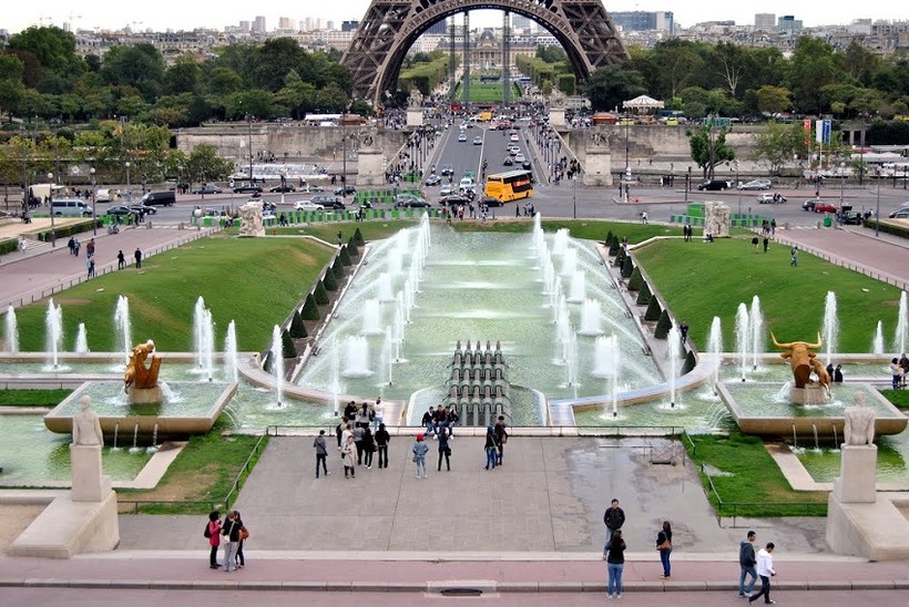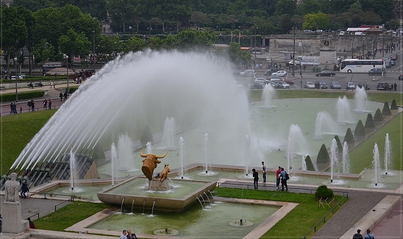 Спускаясь к Эйфелевой башне от Дворца Шайо, вы неминуемо будете проходить через сады и Варшавский фонтан Трокадеро. Впервые, когда я оказалась здесь, этот ансамбль мне чем-то напомнил петергофского Самсона в Нижнем парке Петродворца.