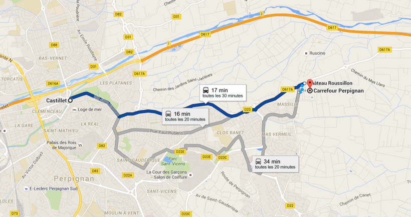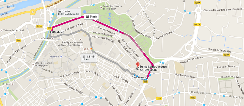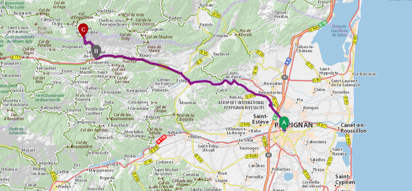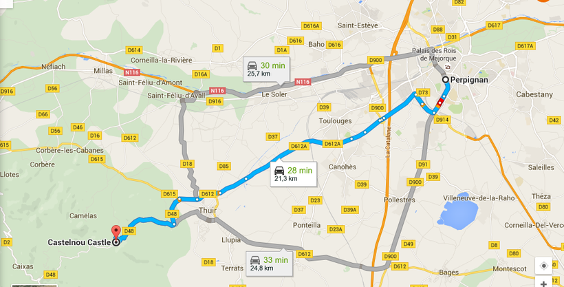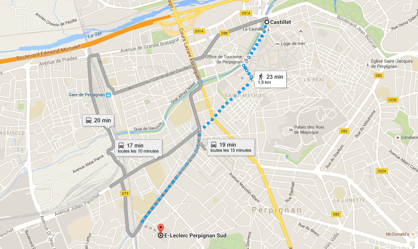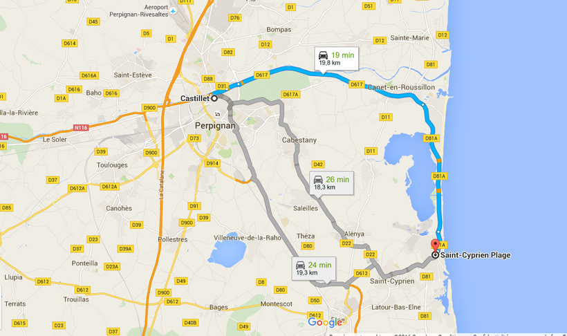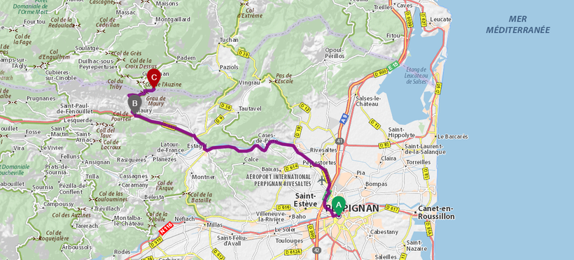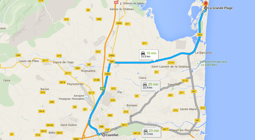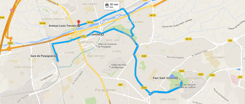 - Из Барселоны. Автомагистраль АР7, направление "Франция". И после прибытия во Францию – автомагистраль А9: выход 42 (sortie 42): Perpignan-Sud, затем направление Perpignan Centre ville.