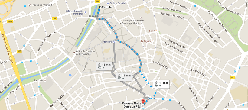 В центре города, как это обычно бывает, сконцентрировано множество интересных исторических и культурных объектов. Я последовательно расскажу о некоторых из них, чтобы можно было начать экскурсию по Перпиньяну, не тратя лишнее время на перемещения.