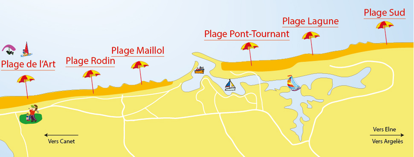 Заняться виндсёрфингом и кайтбордингом можно ещё на пляже Barcarèse, Canet en Rousillon и на некоторых других пляжах, более отдаленных от Перпиньяна.