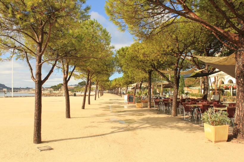 Антиб. Один из самых длинных пляжей Прованса находится именно здесь, дополнительную живописность ему придают скалистые склоны, поросшие соснами.