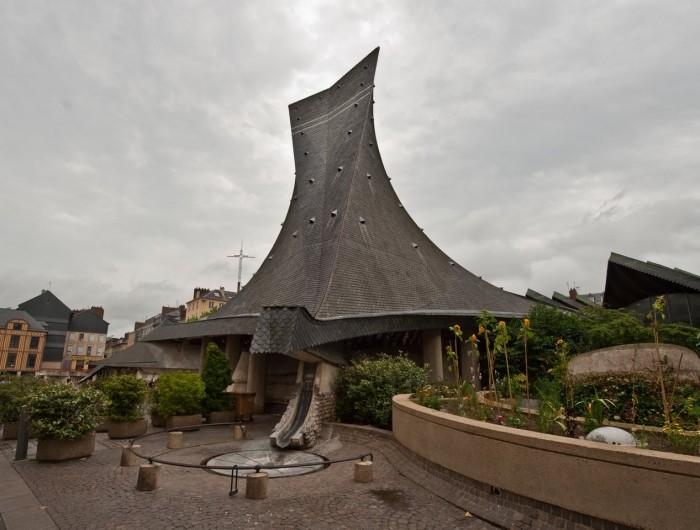 - Церковь Жанны Д' Арк — одно из наиболее оригинальных сооружений в городе. Кто-то ассоциирует его с костром, как символом сожжения Святой, кто-то с перевёрнутым кораблём. Окна сравниваются с формой рыб. Причудливая постройка обязательно привлечет ваше внимание.