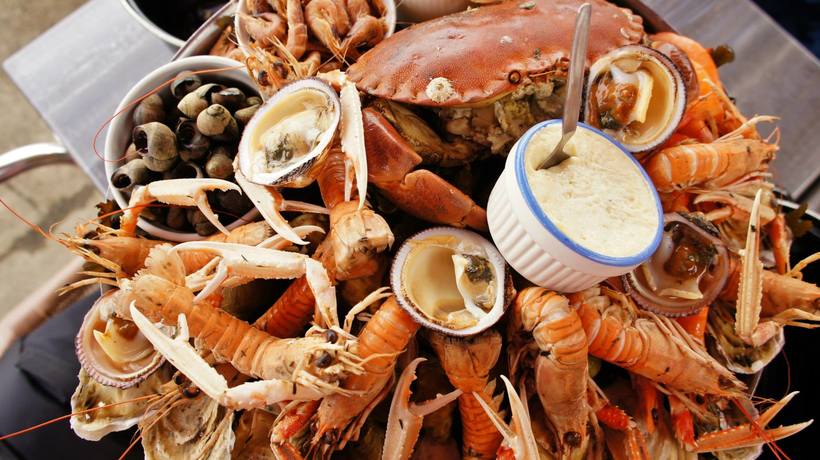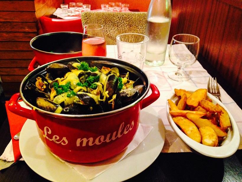 - Морепродукты. Мидии в белом вине, различные виды рыбы, тушенной в сидре и пряностях, запеченные с солью моллюски в луковом соусе, суп с лобстером и крабами, морской черт в томатном соусе. Если вы хотите попробовать всех морских гадов сразу, то советую взять одно большое плато. Стоимость будет варьироваться от 60 до 100 EURO (на двоих) в зависимости от количества морепродуктов. Но вы не пожалеете, рекомендую!