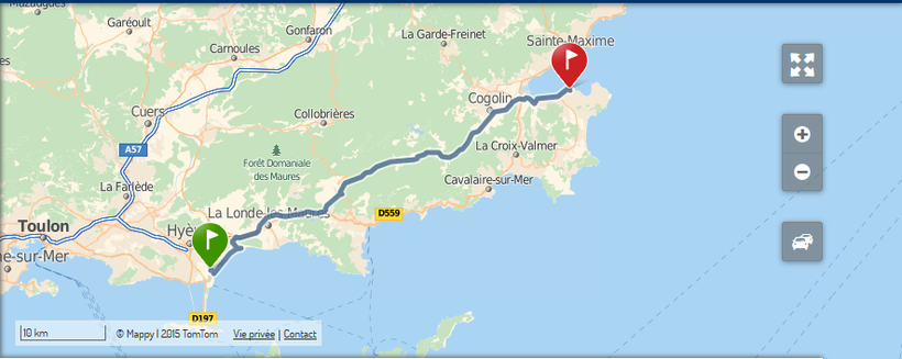 Выехав из этого аэропорта на автомобиле, попадёте в Сен-Тропе за 50 мин. Следуйте за направлением La Londe les Maures, затем Bormes Les Mimosas (не въезжая в этот населённый пункт), затем La Môle.