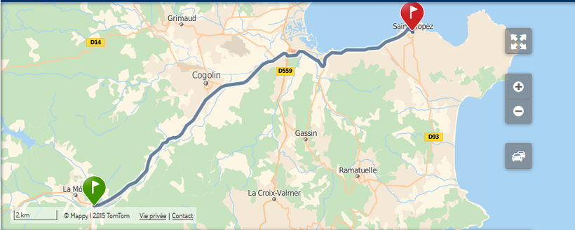 Дорога через La Môle, конечно, не позволяет насладиться прибрежными пейзажами, так как проходит через лес, однако здесь меньше пробок. От La Môle следуйте за указателями Saint Tropez.