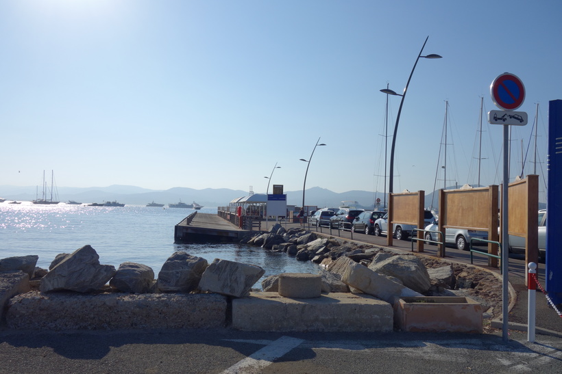 Катер из Сен-Рафаэля прибывает к причалу расположенному около парковки Parking du Port, недалеко от автовокзала (см. план причал отмечен красным кружочком).