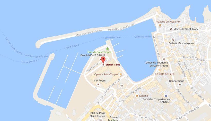 Единственная станция такси в Сен-Тропе расположена в порту (см. карту) Quai Gbriel Pari +33 (0)4 94 97 05 27. Работает служба круглосуточно, операторы знают английский, французский. Поездка от Сен-Тропе до пляжей Пампелона обойдётся в среднем около 30€.