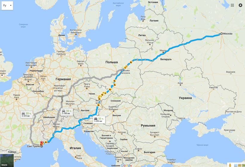 Добираться до Сен-Тропе на машине из России мне так и не пришлось. С хорошо выбранными остановками такое путешествие позволит посетить не одну страну Европы, так как Сен-Тропе находится в 3 279 км от Москвы.