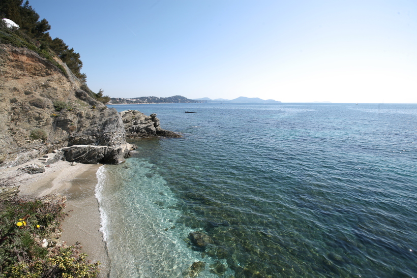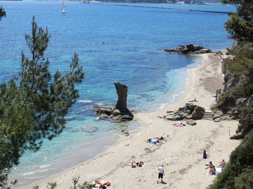 - Anse Mejean Plage — большой пляж в прекрасной бухте, окруженной огромными деревьями с густой листвой, который может открыть вам вид на одноименный грот с удивительной по цвету водой. Если вы любите приключения, обязательно найдите его на карте и посмотрите на потрясающий по красоте грот! Добраться сюда достаточно легко: по трассе D42 из центра на восток, по указателям на город Йер, затем спуститься к бухте. Пляж, как обычно, не оборудован шезлонгами, песчаный, имеет удобный заход в воду для детей. Кроме того, вам понравится вид на маленькие яхты и туристические суда на горизонте.