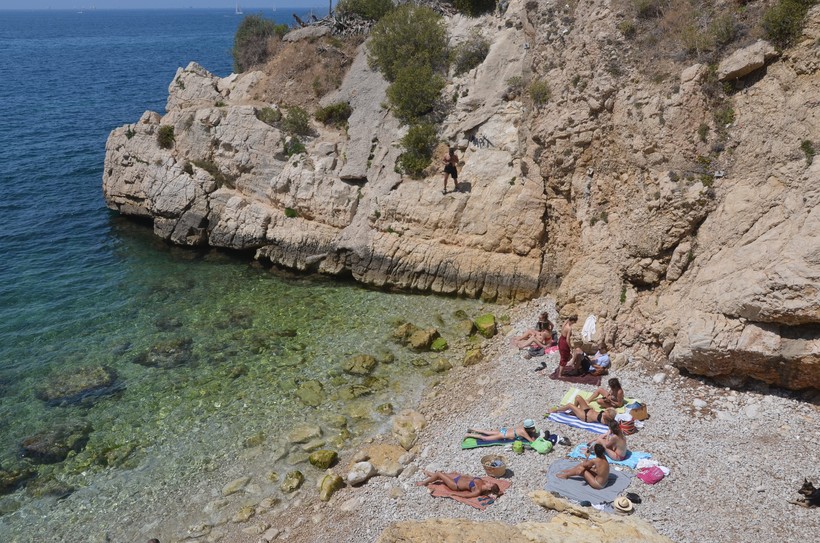 - Plage de Pipady — маленький, но по-настоящему уникальный пляж в Тулоне, находится он к западу от основных пляжей в районе Mourillon. Он действительно очень маленький, а людей здесь обычно собирается очень много, но это никак не умаляет его главного плюса — воды удивительного цвета, от изумрудного до аквамаринового, которая буквально гипнотизирует. Такой цвет появился здесь из-за необычного смешения пород в почве и водорослей, что придает ему особенное очарование. Я бы настоятельно советовала посетить данный пляж хотя бы один раз, пока вы находитесь в Тулоне. Стоит добавить, что пляж находится вдали от цивилизации, поблизости нет кафе и баров.