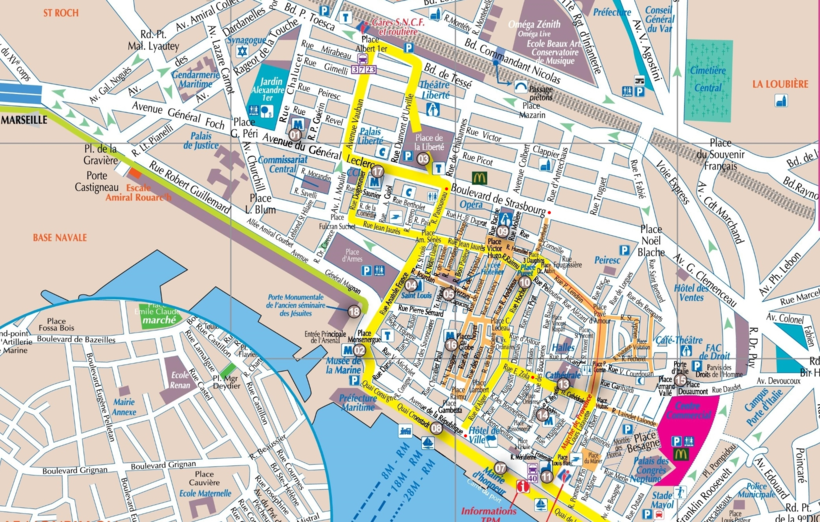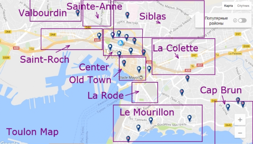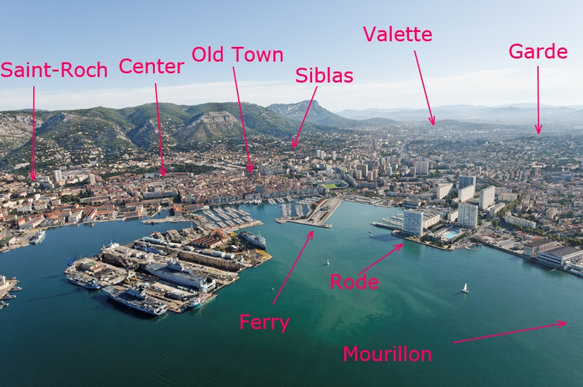 Районов в Тулоне достаточно много, а необычный рельеф, наличие яхт-марины и порта делают город достаточно необычным с этой точки зрения.