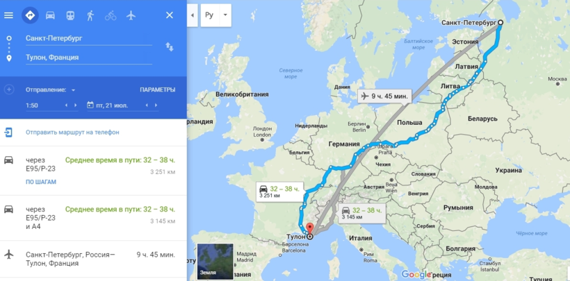 Маршрут Санкт-Петербург — Тулон на автомобиле