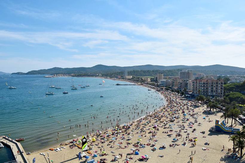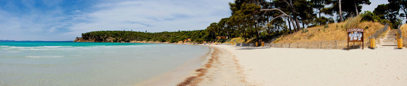 - Brégançon и Cabasson (40 км) — удивительный кусочек этой части Франции, где сочетается шик и морская атмосфера Лазурного Берега и ароматы прованса. В целом это туристическая зона с маленьким городком, фортом и несколькими очень популярными пляжами: огромным лазурным и светло-песчаным Estagnol (на фото ниже), с зеленовато-лазурными водами Plage de Léoube, Plage de Cabasson с интересными камнями, по которым любят бегать дети, и другими.