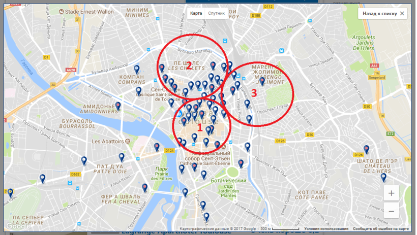 Тулуза разделена на шесть районов. Но самыми привлекательными с туристической точки зрения являются только три из них. На карте они обозначены следующим образом: