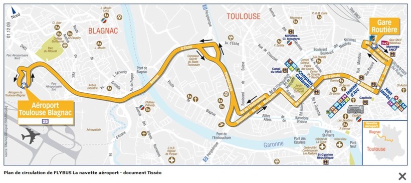 Это самый популярный вид передвижения из аэропорта в город. Плюс данного маршрута состоит в том, что его конечная остановка находится прямо в центре города. При этом курсируя между аэропортом и центром Тулузы, автобус делает несколько остановок в спальных районах.