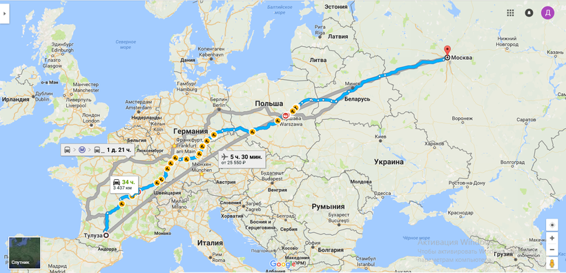 Расстояние между Москвой и Тулузой довольно значительное, оно составляет около 3,500 километров, поэтому, если вы все-таки решились проделать этот путь на машине, то запаситесь едой, канистрой с бензином и, конечно, терпением :).