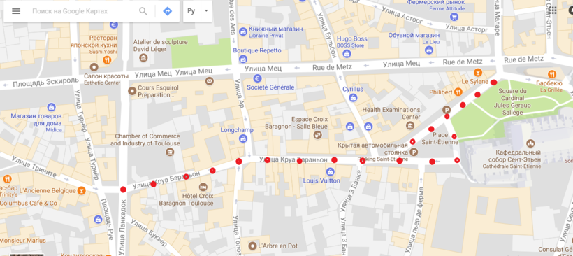 Тулуза довольно большой город, но все достопримечательности находятся в шаговой доступности друг от друга, да и простые улицы иногда вызывают дикий восторг. Поэтому, я считаю, что по городу можно передвигаться пешком, во всяком случае по его центральной части и набережной. Так же многие местные жители ездят на велосипедах и самокатах, а пункты прокатов расположены на каждом шагу. Стоимость аренды за час 2 EUR.